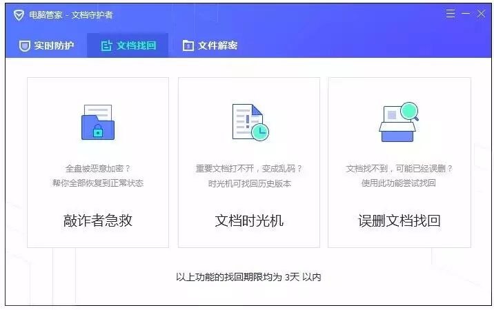 您可以使用文档恢复工具。已经中了病毒的用户,使用电脑管家-文件恢复工具有一定概率恢复您的文档。